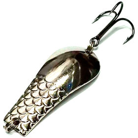 Данная модель имеет изогнутую геометрию, которая отвечает за игру блесны. Верхняя часть имеет гладкую поверхность, а нижняя – рифленую, рисунок напоминает чешую. Данная блесна в зависимости от модификации может быть выполнена из никеля, меди или латуни. Ладога оснащается тройником, который не позволит упустить клюнувшую рыбу.