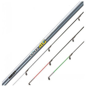 Middy X-Flex 4G- универсальные фидерные удилища При изготовлении бланков удилищ используется технология X-Flex. Намотка слоев углепластика с различным направлением укладки волокон происходит комбинированным образом, благодаря чему бланк удилища получается очень гибким и прочным. Удилища имеют мягкий наконечник, который реагирует даже на самые аккуратные поклевки. Удилища оснащены качественными катушкодержателями, SIC кольцами, идеально подходящими для плетеных лесок. Комбинированная рукоятка из пробки и EVA, совмещена с гайкой катушкодержателя. Она приятно держится в руке и не скользит при попадании воды. Удилища серии Middy X-Flex 4G обладают хорошими бросковыми характеристиками, прочностью, небольшим весом и при этом имеют разумную цену.