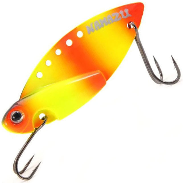 Универсальная цикада Namazu Booi займет достойное место в коробках спиннингистов и хорошо послужит рыболовам-зимникам. Ее характеристики позволяют эффективно ловить как в отвес, так и горизонтально. Цикада имеет плоский металлический корпус с большим плавником. В нем расположены 5 отверстий и все они предназначены для монтажа. Если сменить места крепления, можно повлиять на характер игры цикады, угол наклона и горизонт заглубления в зависимости от условий, которые ставит перед рыболовом конкретный водоем. Эта модель весит 10-14 грамм. Она лучше всего подходит для ловли крупной рыбы на глубине.