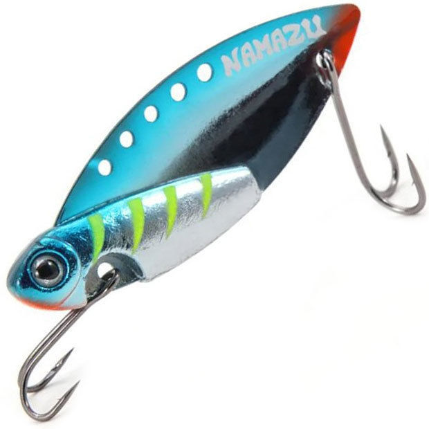 Универсальная цикада Namazu Booi займет достойное место в коробках спиннингистов и хорошо послужит рыболовам-зимникам. Ее характеристики позволяют эффективно ловить как в отвес, так и горизонтально. Цикада имеет плоский металлический корпус с большим плавником. В нем расположены 5 отверстий и все они предназначены для монтажа. Если сменить места крепления, можно повлиять на характер игры цикады, угол наклона и горизонт заглубления в зависимости от условий, которые ставит перед рыболовом конкретный водоем. Эта модель весит 10-14 грамм. Она лучше всего подходит для ловли крупной рыбы на глубине.
