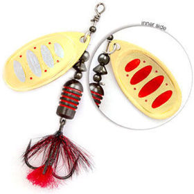 оригинальная вращающаяся блесна, со смещённым вперёд центром тяжести, способствующем более стабильной уверенной игре. Оригинальная раскраска лепестка, покрытого рисунком с обеих сторон создаёт в воде при игре подобие объёмного мерцающего силуэта, привлекает рыбу с большого расстояния. Тройники, оснащённые мушкой, которая сама по себе является приманкой, которую так и хочется ущипнуть!