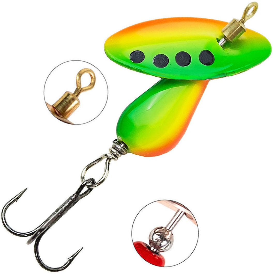 Смещение массы центрального грузика в заднюю часть, дает нам отличные характеристики дальности и точности, от чего порой сильно зависит результативность ловли. Под лепестком блесны расположился подшипник, который способствует более легкому вращению. Лепесток имеет быстрый старт, и блесна "заводится" мгновенно, что позволяет ловить даже джиговой неравномерной проводкой.