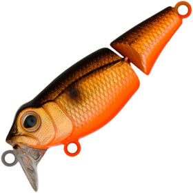 Воблер Strike Pro Pygmy Jointed 40 - медленно тонущий компактный составник из двух секций. Стыковка традиционная, выполнена двумя петельками, соединенными восьмеркой. Крепление достаточно прочное для расчетных нагрузок, обеспечивает необходимую свободу для игры хвостовой секцией. Внутри предусмотрена стационарно зафиксированная огрузка из крупного металлического шарика, который положительно влияет на полетные свойства и сообщает приманке устойчивость при проводке. Лопасть небольшая, в виде трапеции, установлена почти под прямым углом к осевой линии.