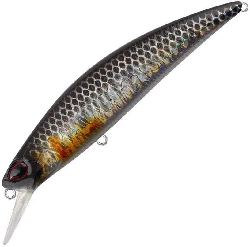 Особенности дизайна: FOCUS 90S – это классический воблер-минноу вытянутой формы, имитирующий мелкую кормовую рыбку. Тело воблера имеет две разделенные боковой линией рельефные фактуры поверхности. Верхняя часть выполнена в виде ромбовидных насечек - чешуек, нижняя (вплоть до брюшка) в виде косых насечек. Головная часть воблера рельефно имитирует жаберные крышки рыбки, а 3D глаза дополняют реалистичность дизайна всей приманки. Система дальнего заброса у FOCUS 90S отсутствует. У воблера имеется система баланса, которая одновременно выполняет роль шумовой камеры. Звук звонкий, не громкий.
