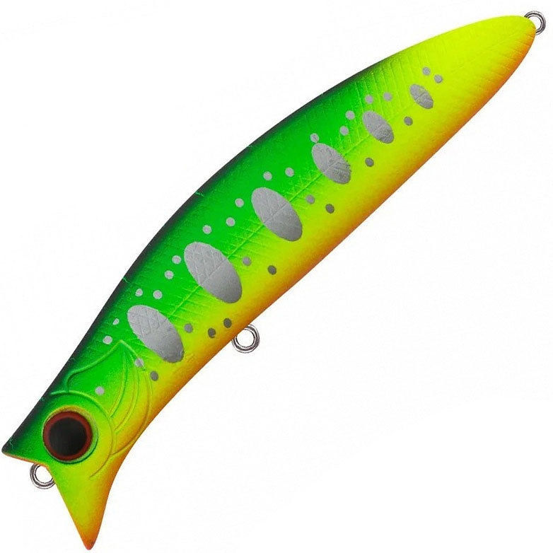 Особенности дизайна: GODZI 90F имеет две разделенные боковой линией рельефные фактуры поверхности. Верхняя часть выполнена в виде мелких насечек-чешуек, нижняя - в виде косых мелких насечек. Головная часть рельефно имитирует открытую пасть и жаберные крышки рыбки. Большие вклеенные объемные глаза завершают дизайн приманки. GODZI 90F оснащен системой баланса, которая одновременно выполняет функцию шумовой камеры. Приманка комплектуется двумя острыми тройниками соответствующего размера и надёжной фурнитурой. Поппер имеет современное качественное лакокрасочное покрытие и широкий выбор расцветок в каталоге.