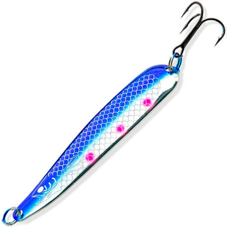 создает имитацию движения раненой рыбки. Блесна представлена в нескольких расцветках, чем увеличивает шансы на улов. Блесна отлично подходит для ловли большой озерной форели, лосося, судака и щуки. Хорошее оснащение блесны открытыми крючками-тройниками не даст сорваться улову.